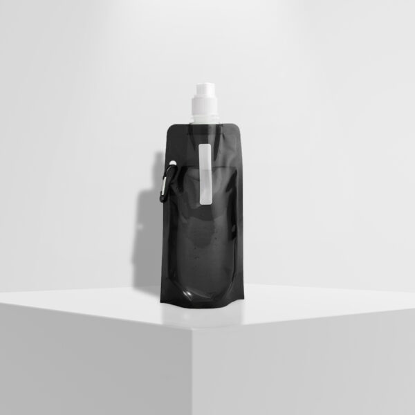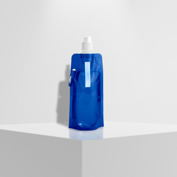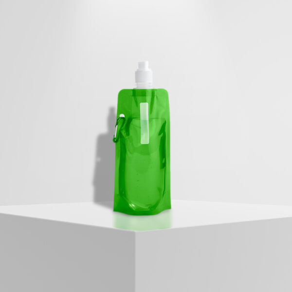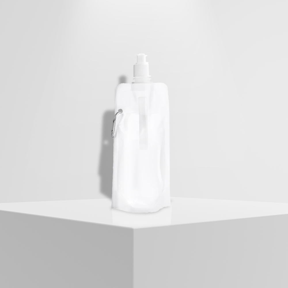 Botella flexible con tapa rosca y boquilla a presión. Incluye mosquetón para fácil transporte. Capacidad 450 ml / 15 Oz.